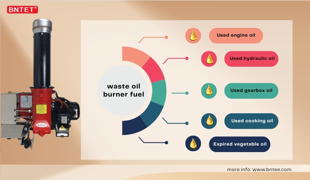 Waste oil burners can utilize a wide range of industrial or domestic waste oils. such as:Used engine oil,Used hydraulic oil,Used gearbox/transmission ...